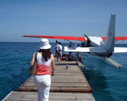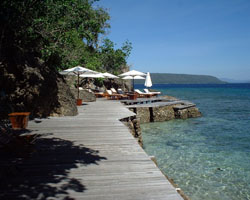 合言葉は「Welcome To Jungle!」フロートプレインを降りると、すぐそこはアマンワナの桟橋です。フロートプレインの定員は8名までです。もうひとつの行き方としては、デンパサ-ル~スンバワを小型飛行機で、そして陸路~水路=計3時間というのもあります。ちなみに料金は、水上飛行機の半額です。(でも時間がかかりますね)