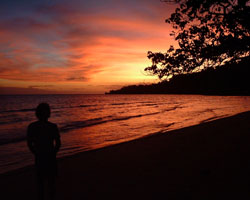 モヨ島のサンセット。私達のテントのまん前のビーチです。夜は星が降るようでした。