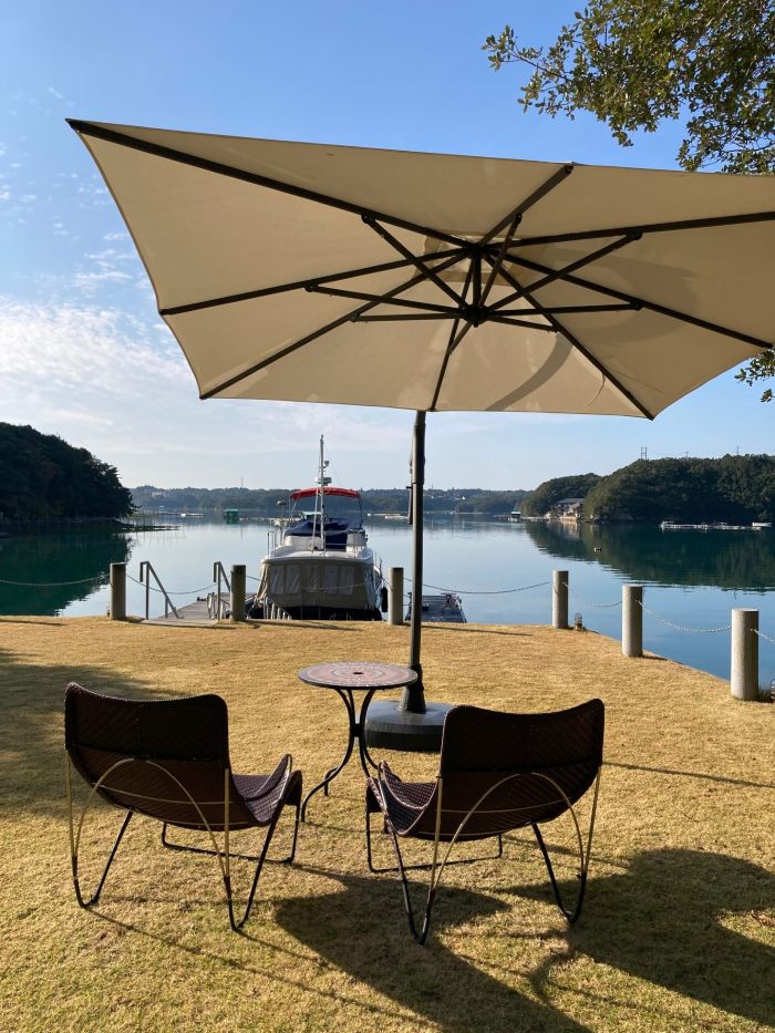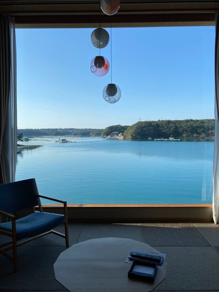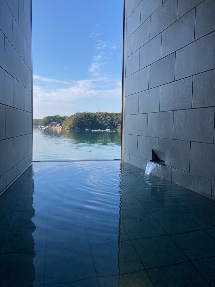 * つるんと鏡のような英虞湾ビュー@屋上カウンター。