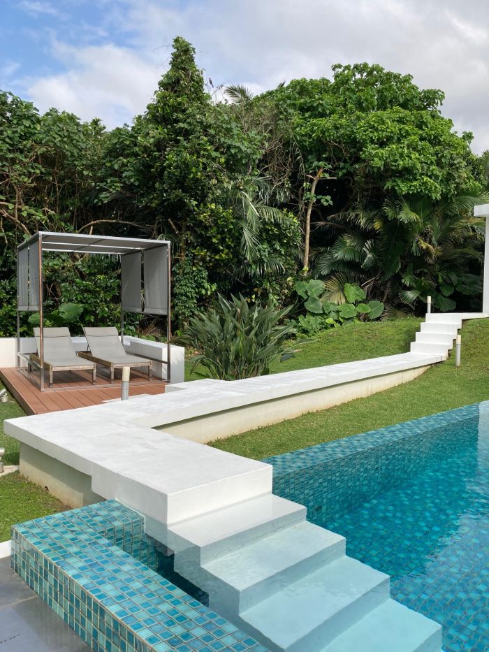 奥には珊瑚を敷き詰めた小径、胸が高鳴るSetting。