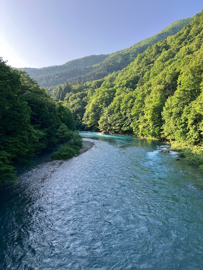 ぼ~っと飽きずに見惚れるコントラスト、渓流・山ビュー。