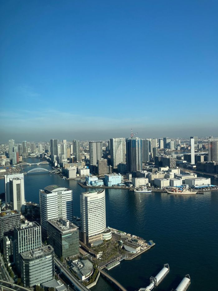 東京湾ビュー、右下に竹芝桟橋。