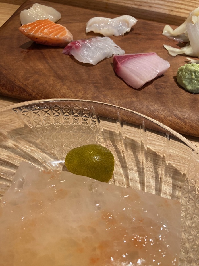 ソルトボード+柑橘でいただくお刺身。