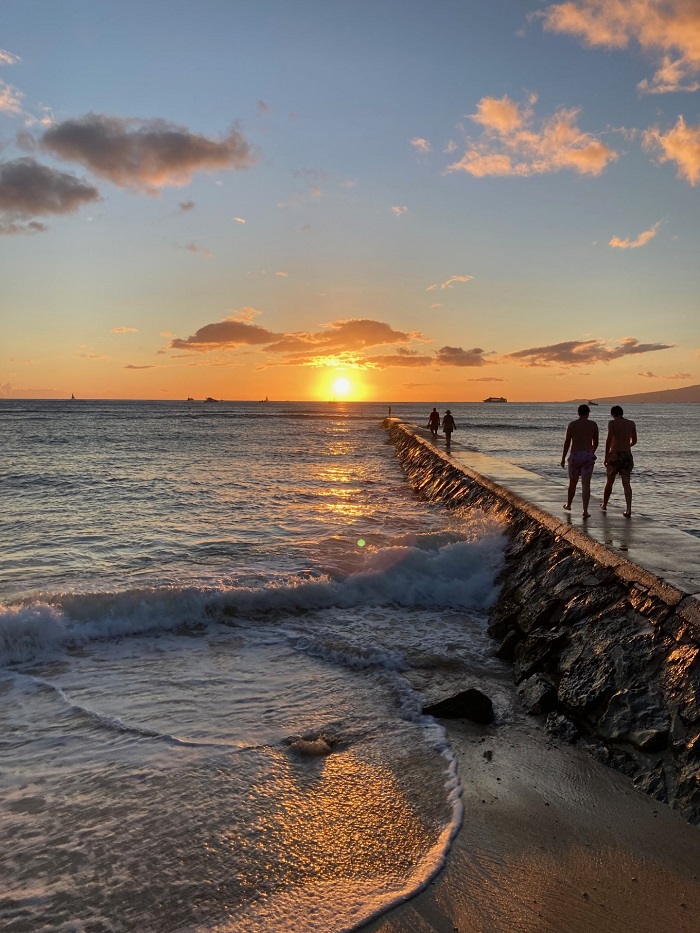 ツーリストも別荘族も引き揚げロコが目立つサンセットタイム。