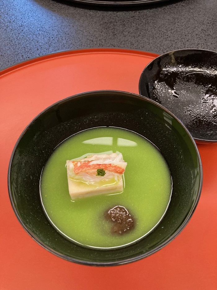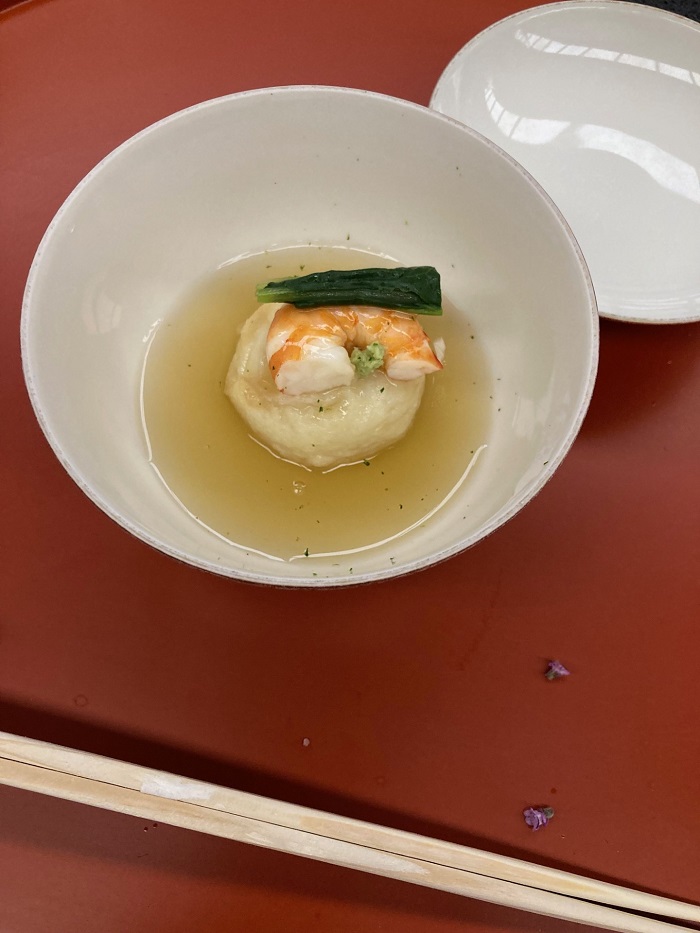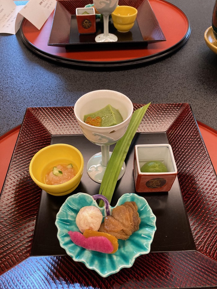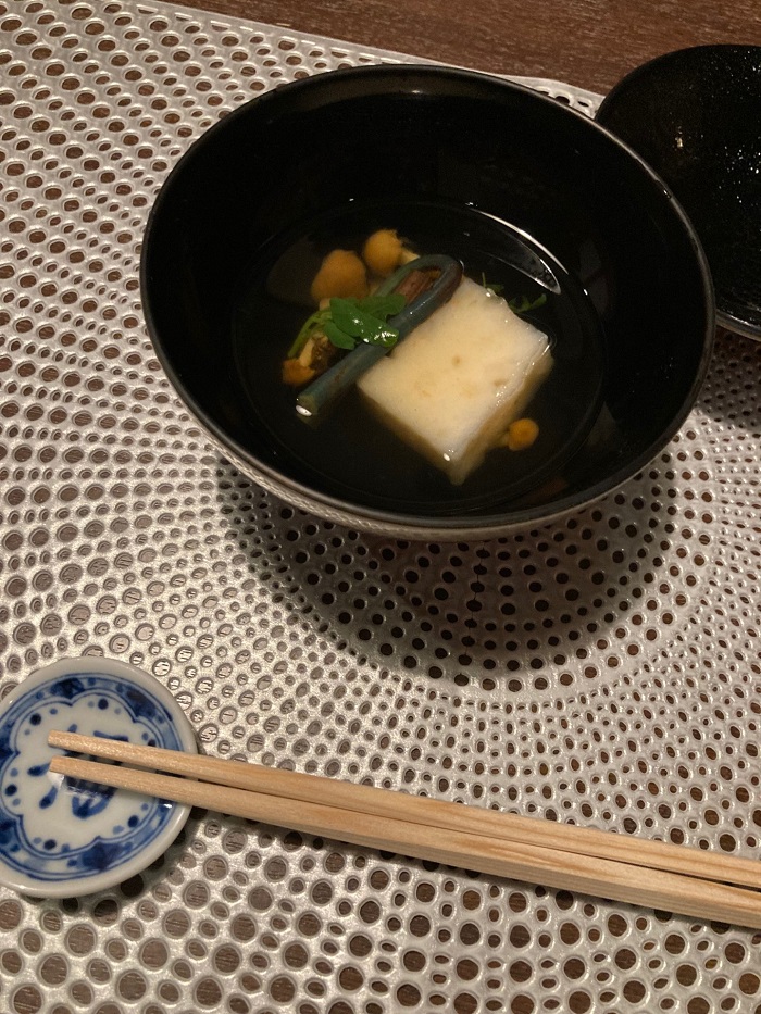 本日のアミューズ3種、チーズ豆腐旨し。食前酒はサービス。