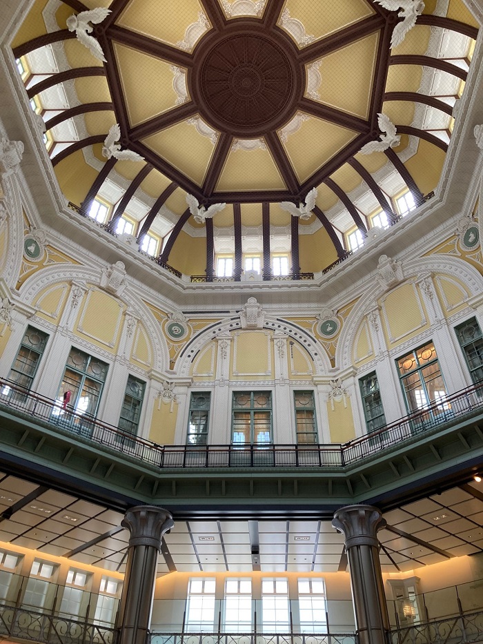 薄緑の屋根が印象的・端正な佇まい、1952年開業とは恐れ入る。